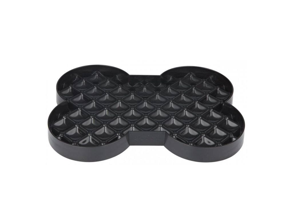 Lízacia podložka v tvare kosti - LickiMat SloDog čierna stimulácia a motivácia k pomalému tráveniu