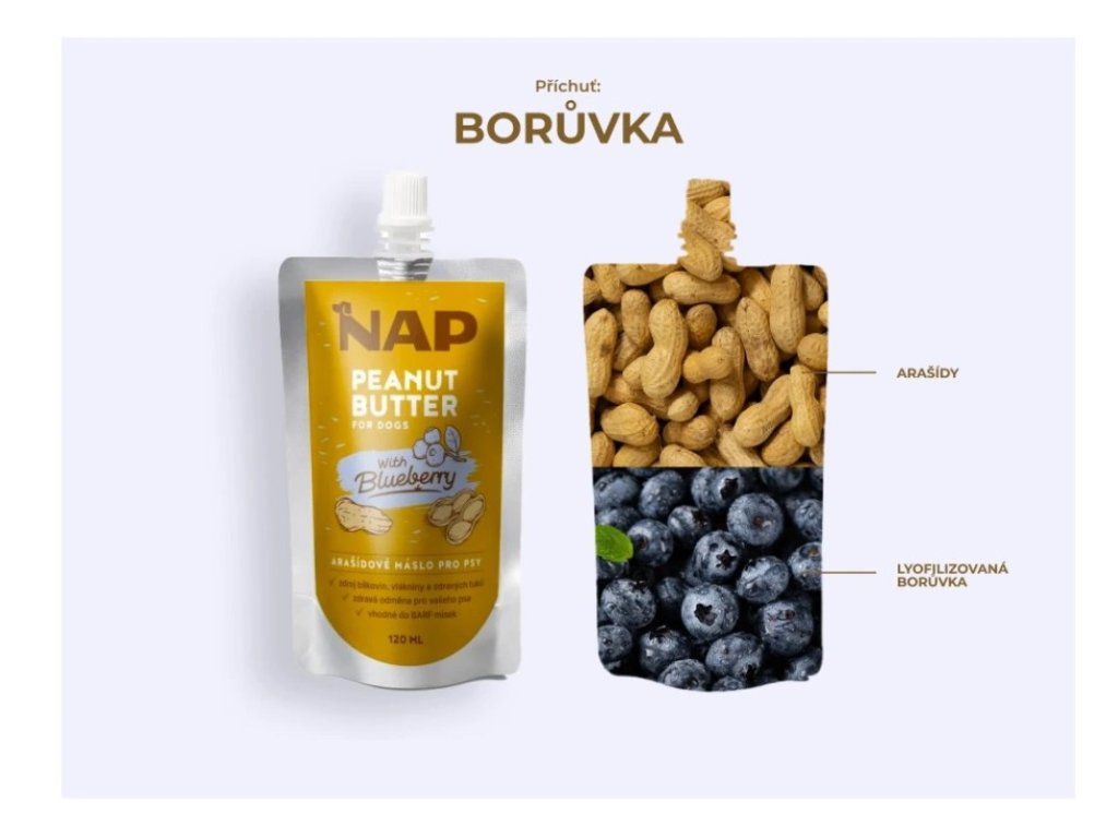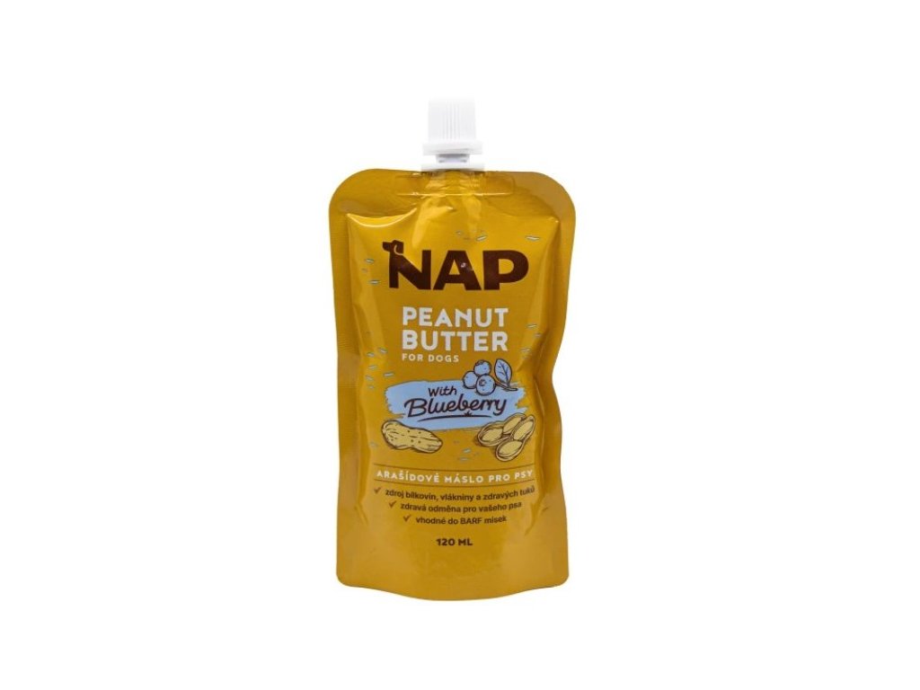 NAP Arašidové maslo pre psov 120ml - čučoriedka do misiek, odmena pri tréningu